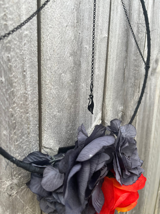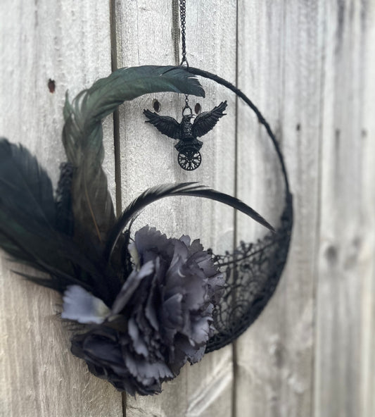 Black Crow - Flowers and Lace - Hanging Wreath